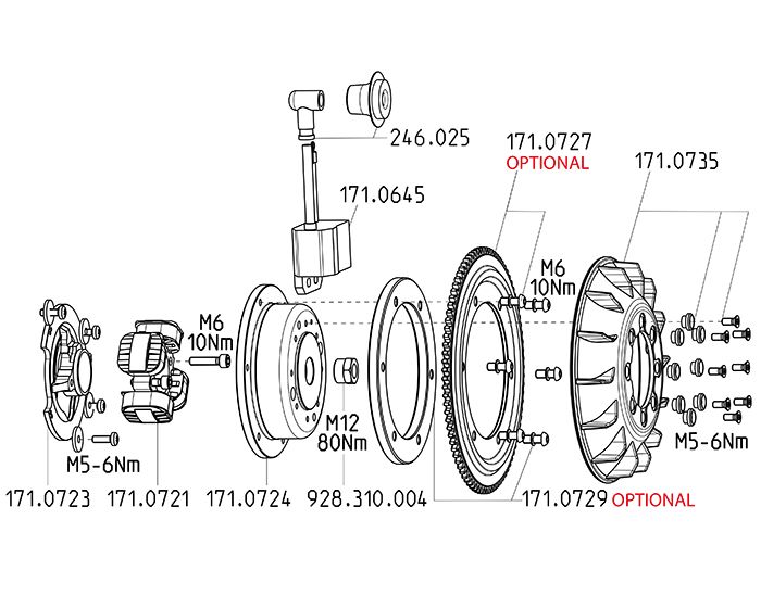 Per i modelli con AVVIAMENTO ELETTRICO acquistare separatamente la corona dentata cod:171.0727.