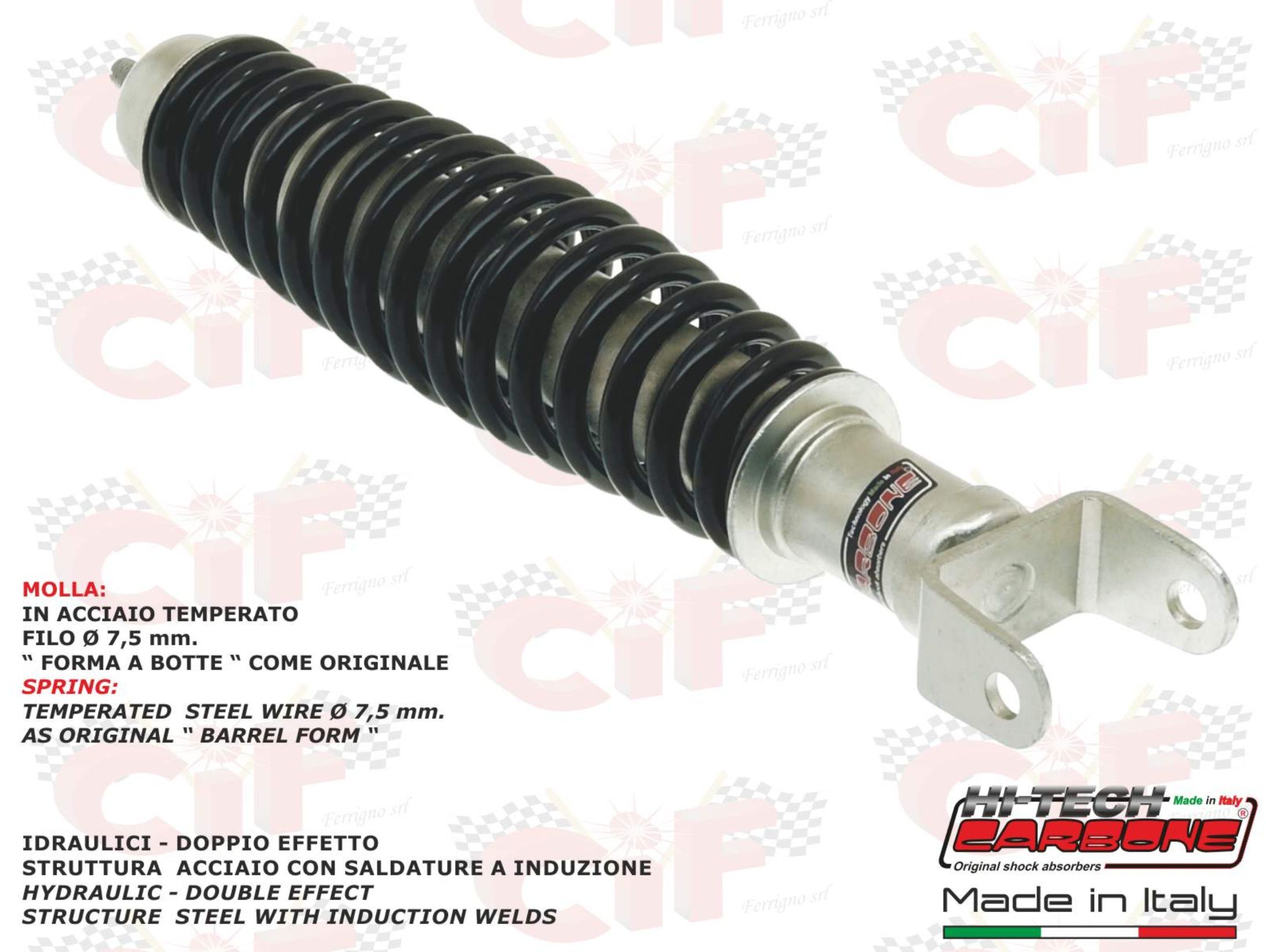 AMMORTIZZATORE POSTERIORE CON CORPO ZINCATO E MOLLA NERA, ADATTABILE ANCHE SU VESPA 50 SPECIAL - PRIMAVERA 125 ET3 - SPRINT - RALLY - TS - T5 - PX 125/150 - PE 200 - PX FRENO A DISCO - MARCA CIF (MADE IN ITALY)
