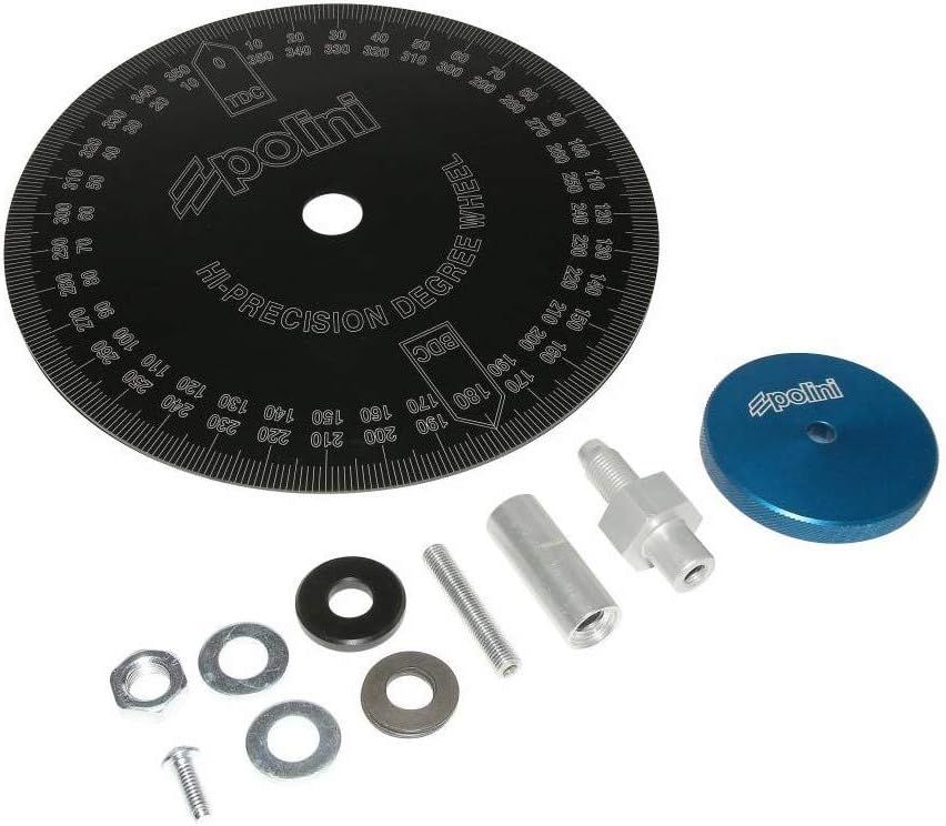Fondamentale per tutti gli esperti in elaborazioni e non, questo disco graduato permette la lettura con precisione dei gradi di apertura delle luci di scarico e di ammissione nel cilindro, la conoscenza di tali valori e´ indispensabile per la corretta messa a punto del veicolo