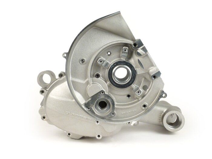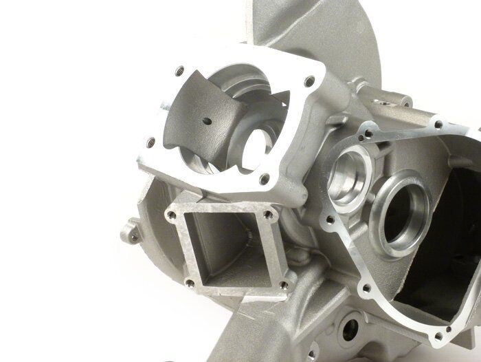 Il cilindro è dotato di un ingresso lamellare, pertanto non è necessario l'ingresso lamellare già presente nel carter del motore ma ancora stampato. Il basamento della carcassa del motore da 200 cc utilizza ora cuscinetti più grandi della categoria 6205. Poiché la guarnizione dell'albero a gomiti sul lato motore si trova ora all'esterno del basamento, l'albero non è più assicurato contro lo spostamento mediante l'avvitamento del pignone primario. È quindi necessario utilizzare un cuscinetto guidato almeno su un lato. A tale scopo offriamo due soluzioni di alta qualità