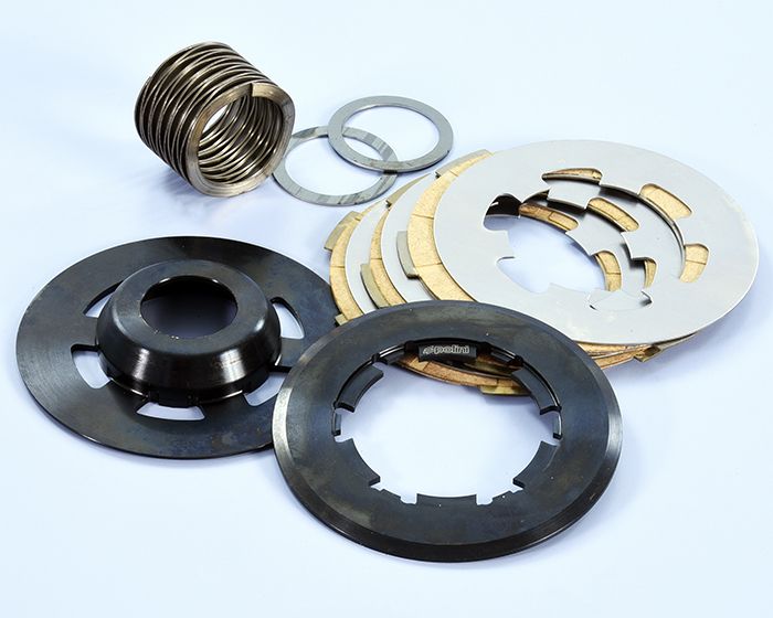 La gamma di frizioni Polini per Vespa 50, Special, 125 ET3, Primavera, PK 50/125 e Small frame si arricchisce. Il nuovo KIT FRIZIONE POLINI ORIGINAL con MOLLA WAVE è stato progettato per offrire un'esperienza di guida ancora più piacevole, grazie a una leva frizione più morbida e progressiva/graduale. Anche per questo modello viene utilizzata l’inedita molla wave. La molla wave è una spirale di nuova concezione, prodotta con tecniche costruttive di alta precisione; grazie alla sua struttura ad alveolare garantisce un’ottima planarità sulle facce di spinta della frizione e tollera carichi molto elevati. Di serie la molla wave è tarata per avere un carico di 80 kg. che può essere modificato, grazie a spessori di settaggio disponibili all’interno della confezione, che consentono di variare il carico fino a 125 Kg. di spinta. La molla è perfettamente alloggiata nel mozzo frizione predisposto con apposita sede di centraggio. Il mozzo frizione e i piattelli spingi disco sono in acciaio nitrurato ricavato dal pieno. I dischi frizione sono stati perfezionati con un materiale che ne aumenta il coefficiente d’attrito
