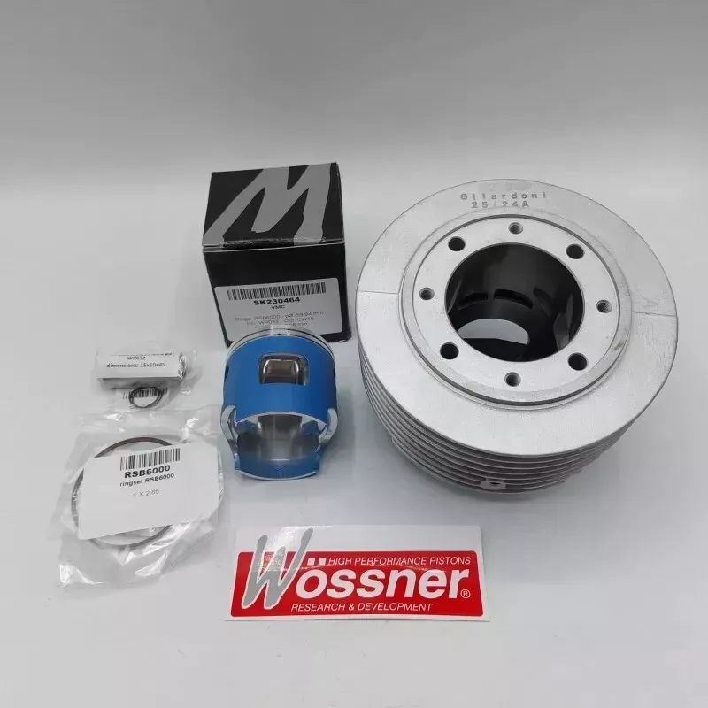 Attenzione: Per essere montato su carter Piaggio c'è bisogno di eliminare la mezzaluna sul basamento del carter e barenare l'imbocco del cilindro sul carter con un diametro di 64mm per un profondità di circa 8mm per far entrare la camicia del cilindro nel carter.