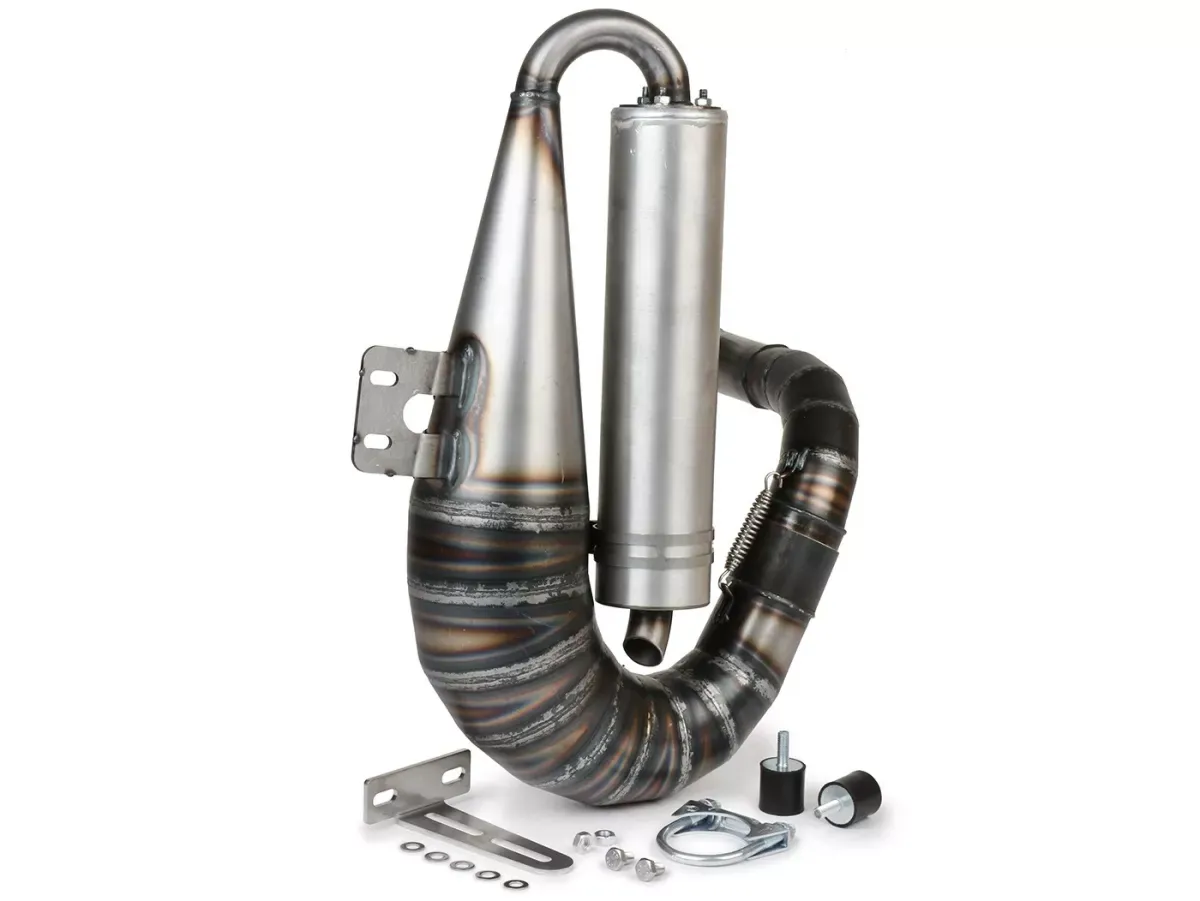 Marmitta espansione racing egig flüster goofi curly per cilindro 220 cc piaggio vespa 50 special pk s xl 125 et3