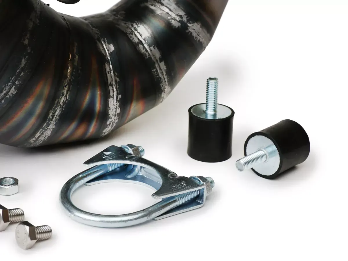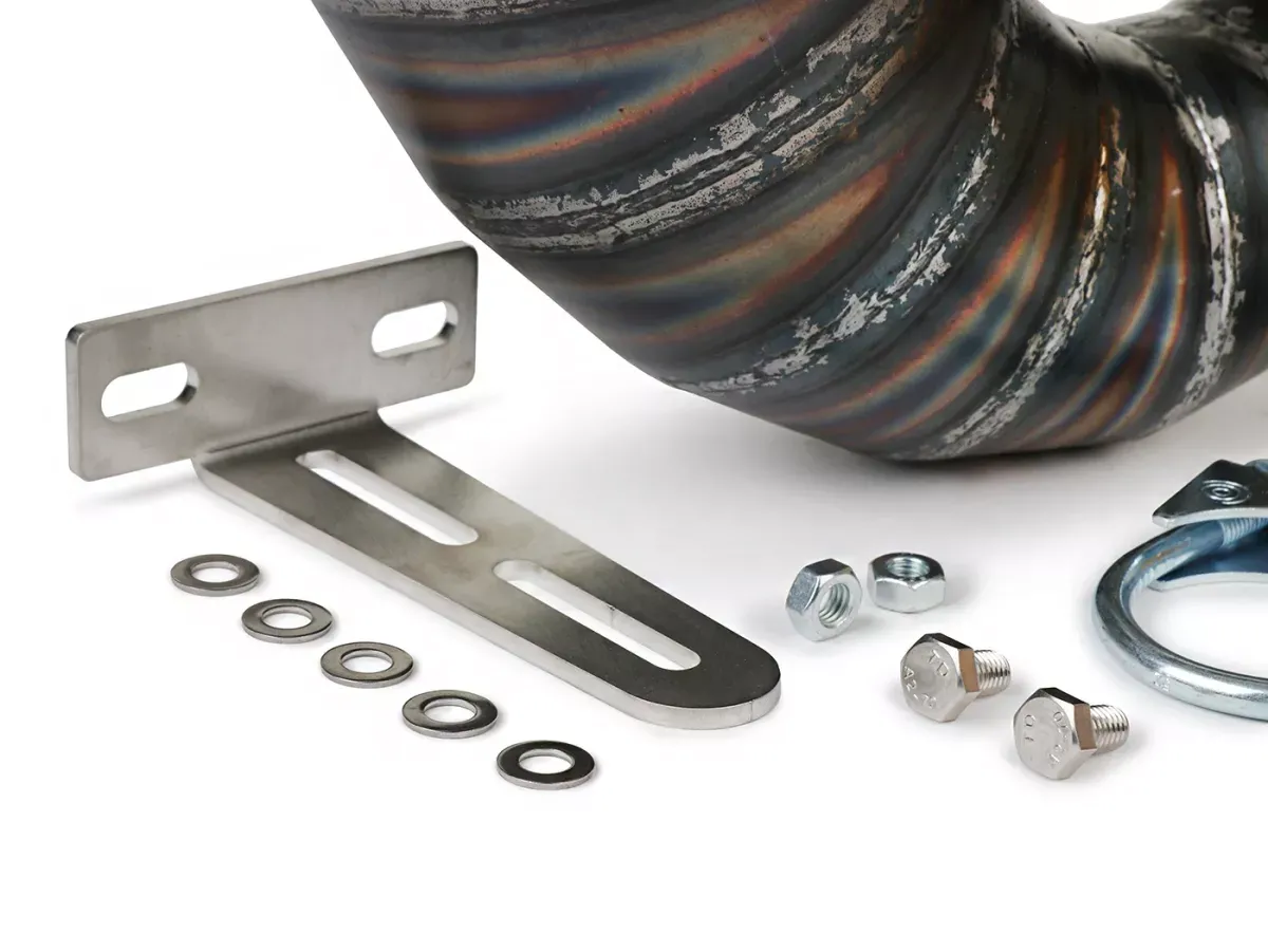 Scarico marmitta espansione racing EGIG PERFORMANCE Flüster Goofi Curly per cilindro gruppo termico Egig 220, silenziatore terminale imbullonato Vespa ET3, PV125 - ammortizzatore disassato richiesto