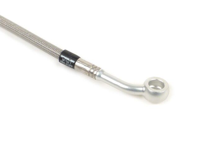 VANTAGGI Con questo tipo di tubazione, la pressione del freno non può andare da nessuna parte se non alla pinza del freno. Il punto di pressione è chiaramente definito e il feedback sulla leva del freno è assolutamente diretto. Oltre a essere resistente agli effetti del tempo, questo è il motivo principale per cui le auto da corsa utilizzano questi tubi da molto tempo. La sensazione di frenata è decisamente migliore e rende il pilota più sicuro.